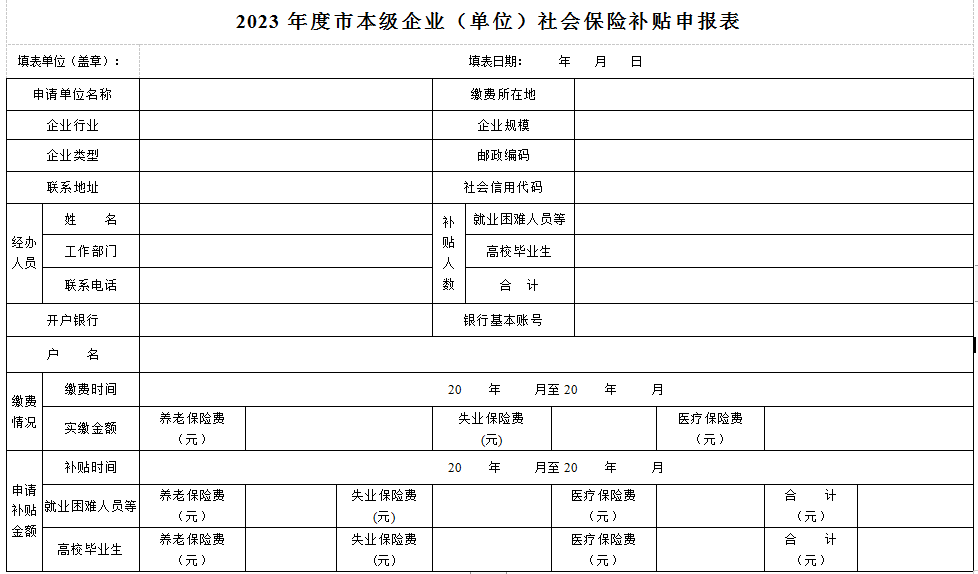 (四)《2023年度市本級企業(yè)(單位)社會保險補貼申報表》(見附件);
