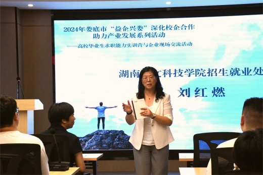 為進一步深化校企合作,助力產(chǎn)業(yè)發(fā)展,持續(xù)推動“益企興婁 活動,20247月,婁底市人力資源和社會保障局與湖南人文科 技學院聯(lián)合開辦了“婁底市首期求職能力實訓營”。為切實提高實訓營學員對行業(yè)企業(yè)的認知,讓學員親身感受婁底企業(yè)的發(fā)展狀況,提高學員的就業(yè)實踐能力,202487 日,由婁底市就業(yè)服務中心、湖南人文科技學院招生就業(yè)處、婁底市企業(yè)聯(lián)合會、婁底市企業(yè)家協(xié)會聯(lián)合主辦,婁底市節(jié)能環(huán)保產(chǎn)業(yè)促進中心等企業(yè)承辦,在婁星產(chǎn)業(yè)開發(fā)區(qū)產(chǎn)學研中心舉辦“2024年婁底市高校畢業(yè) 生求職能力實訓營與企業(yè)現(xiàn)場交流活動”。湖南人文科技學院招 生就業(yè)處處長劉紅燃,婁底市就業(yè)服務中心城鄉(xiāng)就業(yè)服務部部長聶瑞成帶隊參加。
