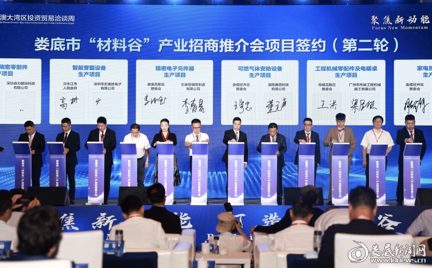 婁底新聞網(wǎng)訊(婁底日?qǐng)?bào)全媒體記者 羅宗 劉婷)5月28日,借助2023年湖南-粵港澳大灣區(qū)投資貿(mào)易洽談周契機(jī),婁底市在深圳舉行“材料谷”產(chǎn)業(yè)招商推介會(huì),現(xiàn)場(chǎng)簽約項(xiàng)目24個(gè),總投資135.2億元。婁底市委副書記、市長(zhǎng)曾超群致辭。