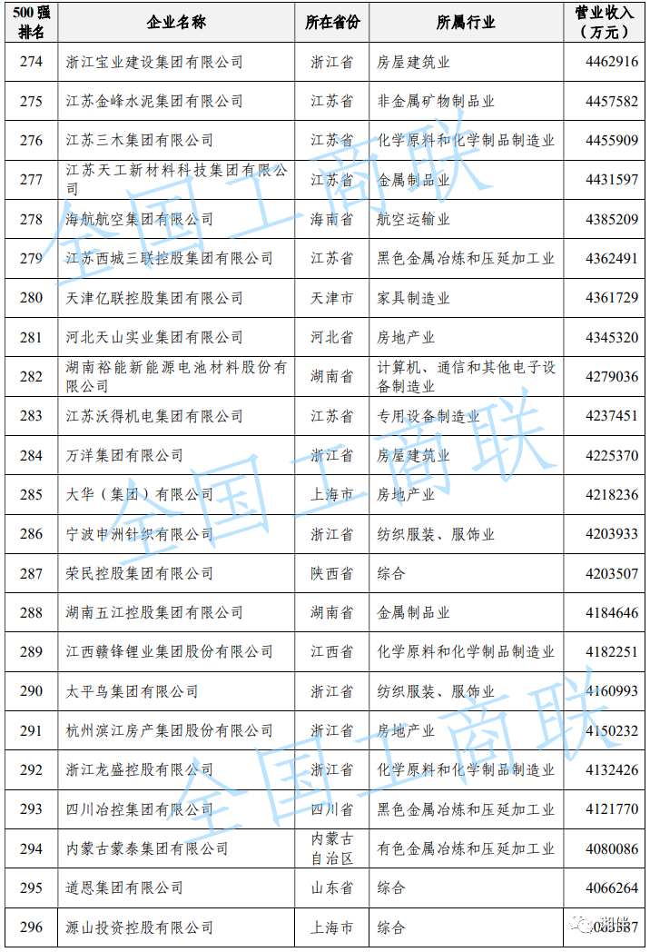 2023中國民營企業(yè)500強(qiáng)榜單