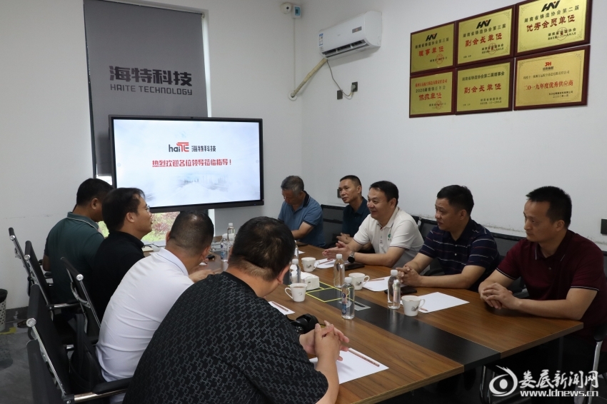 (在海特科技產(chǎn)業(yè)園,調(diào)研組一行深入生產(chǎn)一線詳細了解企業(yè)生產(chǎn)經(jīng)營、運行模式、科研攻關(guān)和人才引育等情況,并開展座談交流)
