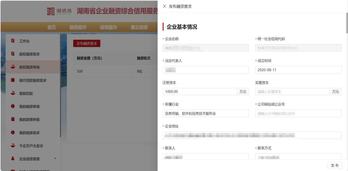 “湘信貸”平臺股權(quán)融資需求提交操作指引