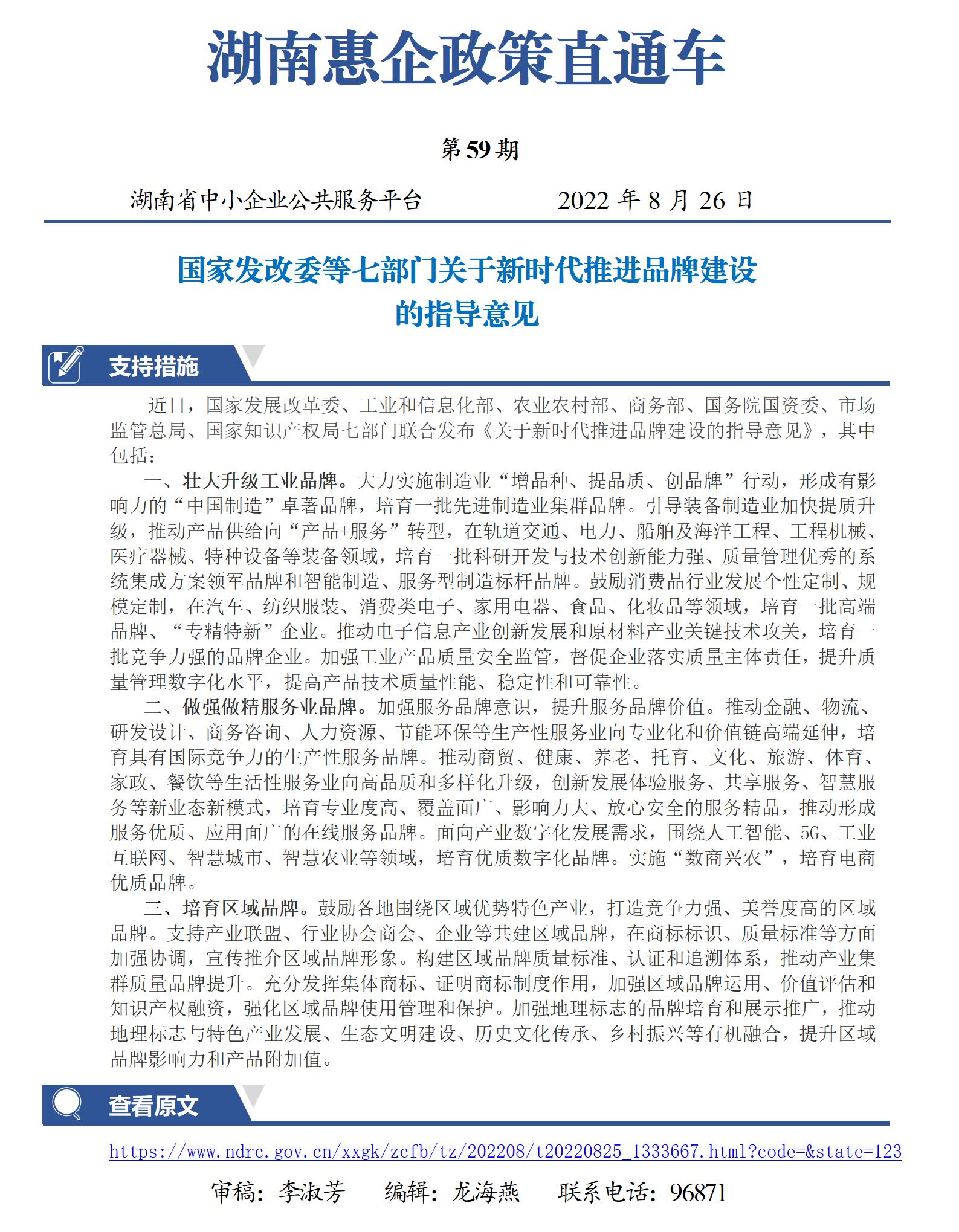 國家發(fā)改委等七部門關(guān)于新時代推進(jìn)品牌建設(shè)的指導(dǎo)意見
